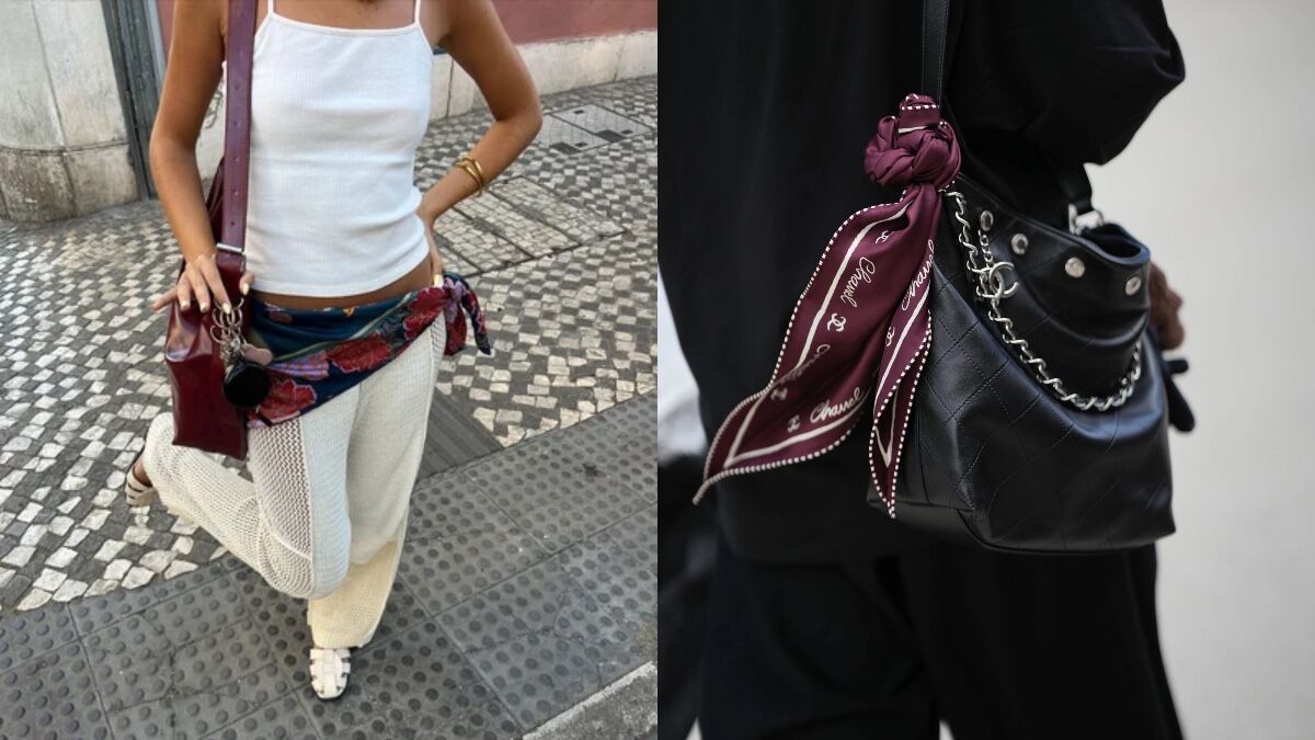 Тенденція прийшла безпосередньо з кращих подіумів світу. У Celine хустка трансформувалася на стильний топ із яскравим принтом, у Toteme її зав'язали лаконічним чорним вузлом на хвості замість класичної гумки. Hermès пішли ще далі, представивши шовковий бралет із кольоровим орнаментом як повноцінну деталь міського образу в дусі lingerie.