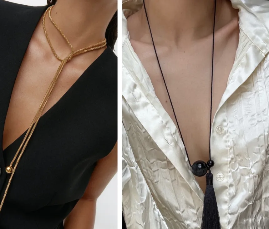 Якщо у вашому образі є відкрита зона декольте – сукня чи топ із глибоким вирізом, – Андре Тан радить доповнити його намистом або чокером. Головне правило: прикраса не має бути ані надто масивною, ані ледь помітною. Завдання аксесуара – підкреслити шию та заповнити порожній простір гармонійно.