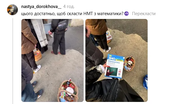 Для багатьох учнів та абітурієнтів Великдень став шансом на Божу допомогу у навчанні. У кошиках поруч із крашанками помітили: підручники з алгебри та біології за 7 клас, посібники для підготовки до НМТ та ЗНО з математики.