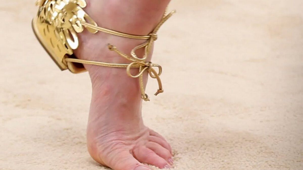 Особливу увагу користувачів привернули сандалі без підошви із закритою п’ятою. Моделі дефілювали в взутті золотистих, сріблястих і коричневих відтінків, доповненому шнурівкою, яка фіксується на щиколотці.