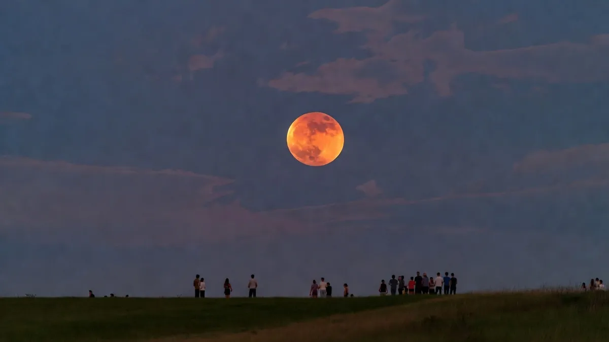Люди спостерігають за «Кривавим Місяцем». Фото: BLIK.ua, згенероване засобами ШІ