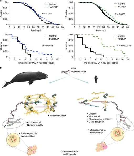 Вчені з Університету Рочестера зробили сенсаційне відкриття, яке може змінити наше розуміння про довголіття. Виявлено, що гренландські кити, які можуть жити понад 200 років, мають унікальний білок, що допомагає відновлювати ДНК. Про це пише Nature.