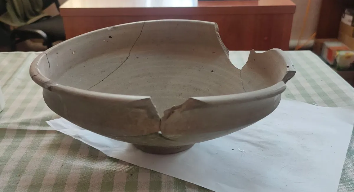 Окрім людських решток (кісток) в землі виявили три керамічні вироби: невеликий опуклобокий сірий горщик з шамотом, фрагменти тонкостінної сірої тарілки (яка потребує реставрації), а також рідкісну велику чорнолощену «тривуху» вазу.