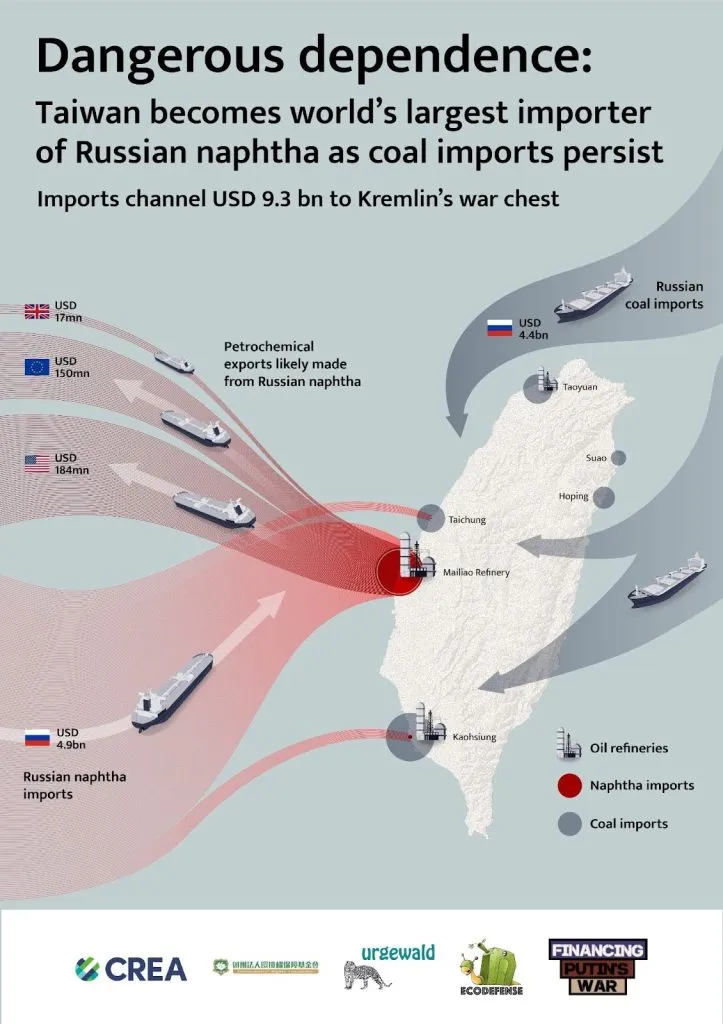 Не дивлячись на приєднання до міжнародних санкцій проти росії та обмеження продажу високотехнологічної продукції, Тайвань не ввів правових обмежень на імпорт російського викопного палива.