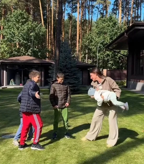 Алла Зіневич, дружина бізнесмена так ексвіцепрем'єра України Сергія Тігіпка, поділилася фото з чотирма дітьми біля розкішного заміського будинку родини.