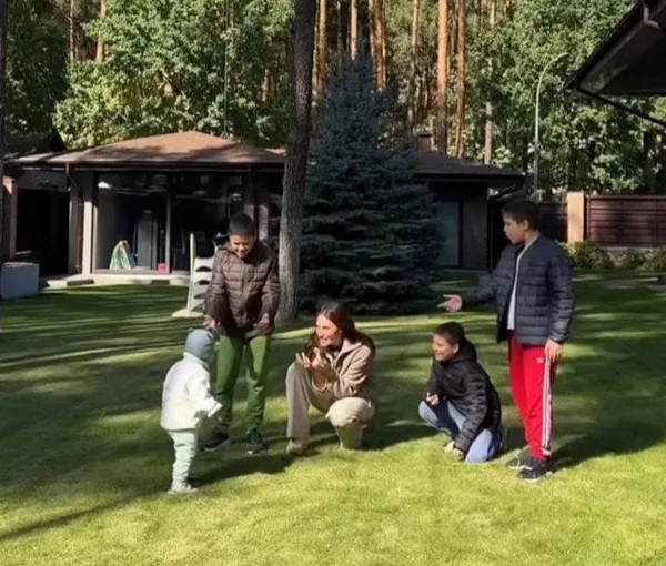 Зіркова мама оприлюднила знімки в Instagram. На світлинах троє синів і донечка, якій нещодавно виповнився рік. Фото зроблені на мальовничій галявині поруч із великим заміським будинком Тігіпків.