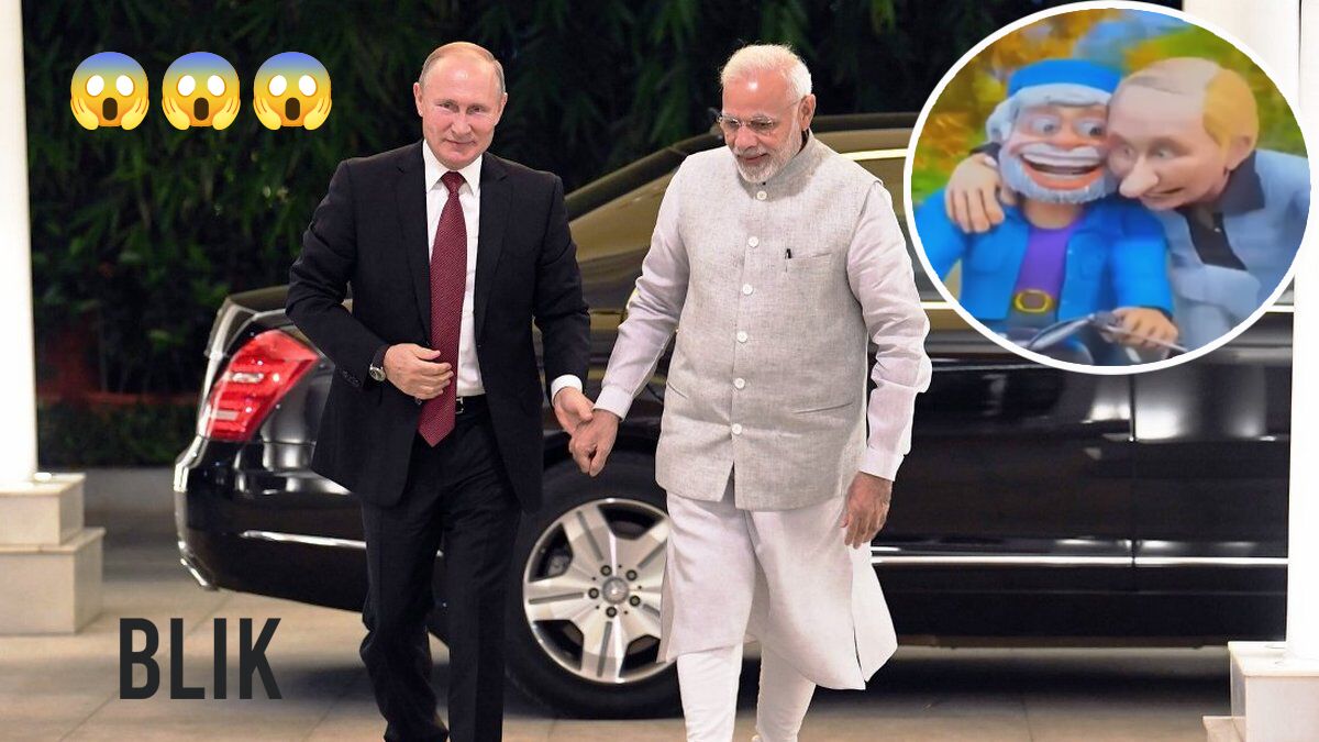 На індійському телебаченні показали мультфільм, в якому Володимир Путін та Нарендра Моді зображені на мотоциклі, мчать повз нафтові вежі та співають відому індійську пісню про дружбу.
