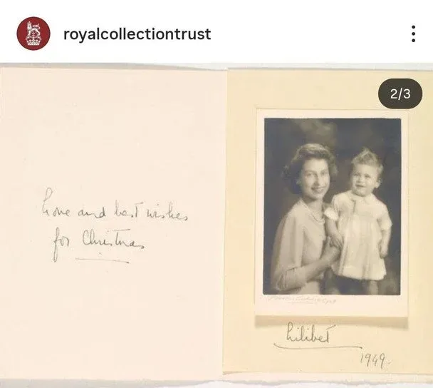 Королівський фонд колекцій оприлюднив раритетну різдвяну листівку 1949 року, на якій зображена молода принцеса Єлизавета зі своїм однорічним сином Чарльзом. Картка датована періодом за три роки до сходження Єлизавети II на престол.