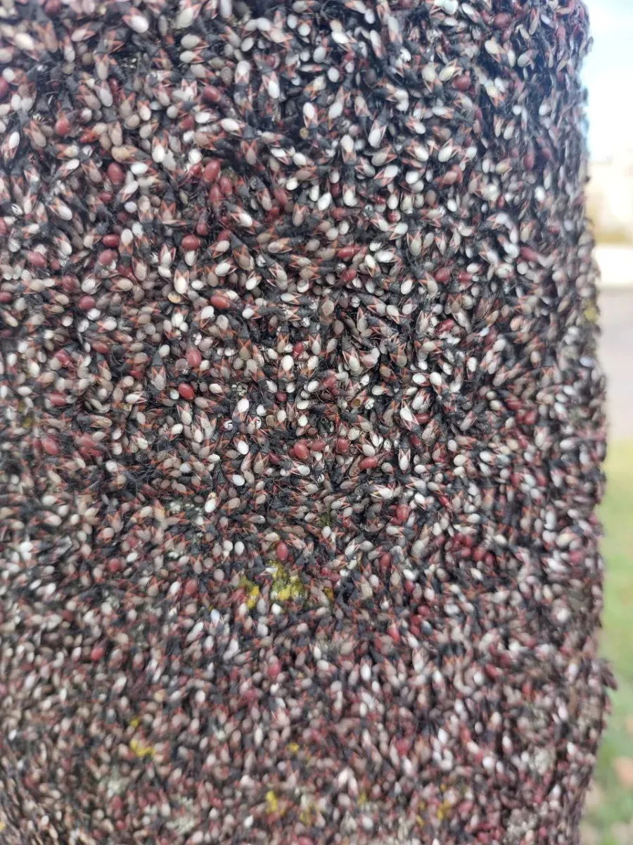 Стовбури дерев, яких просто не видно за жуками, що обліпили дерево, показали в Facebook-групі «Комахи України». Авторка допису уточнила, що фото було зроблено 30 жовтня.