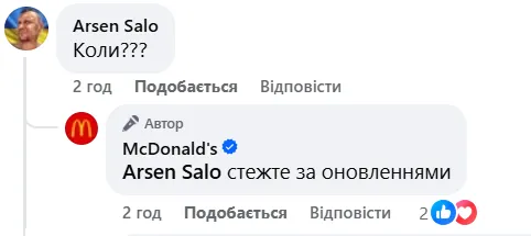 McDonald’s на своїй офіційній сторінці у Facebook опублікував короткий пост зі словом «Побачимось» та смайликом у вигляді очей, викликавши хвилю коментарів від фанатів.