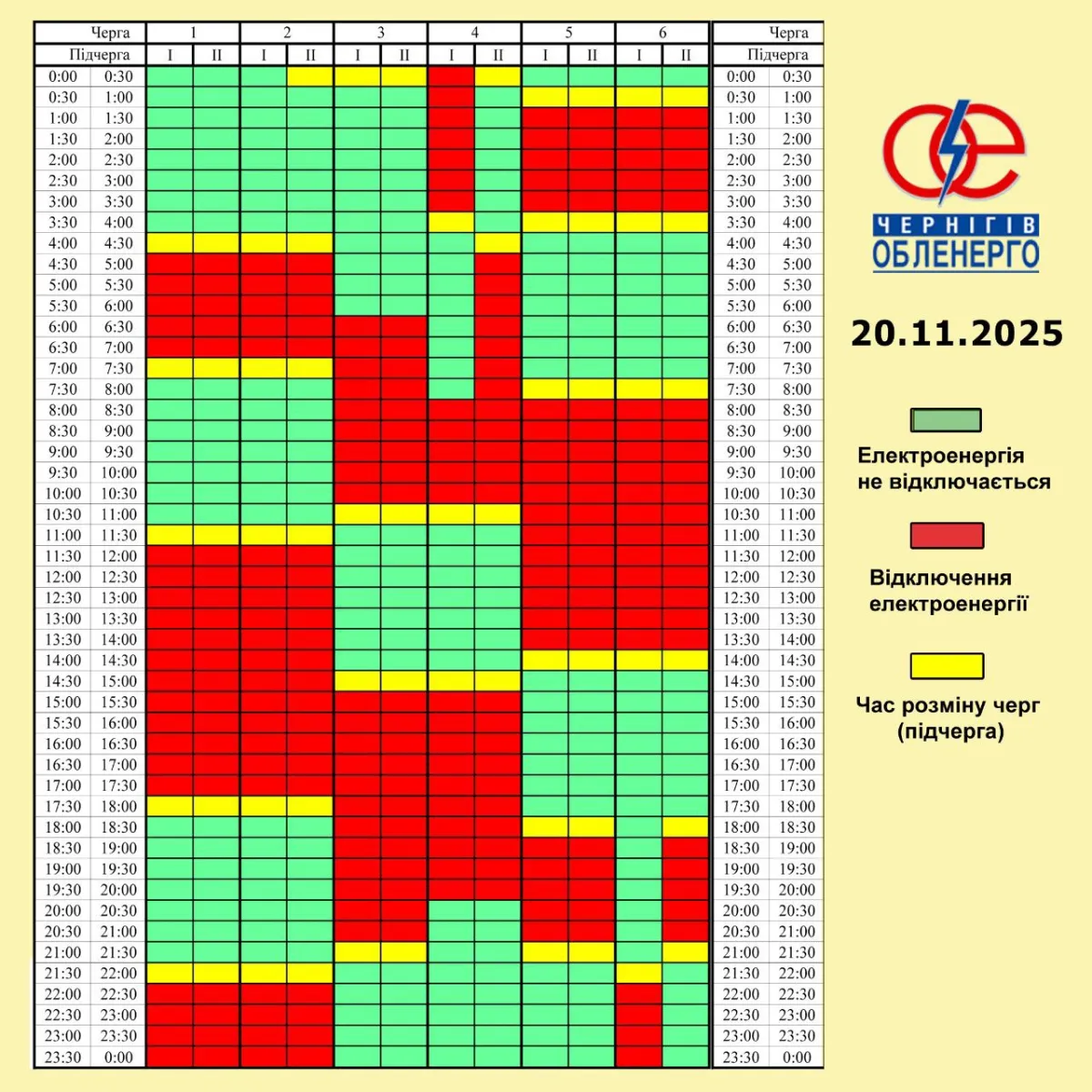 В Одеській області увечері 19 листопада застосовувався ряд змін, тому графіки на 20 листопада також були сформовані із запізненням.