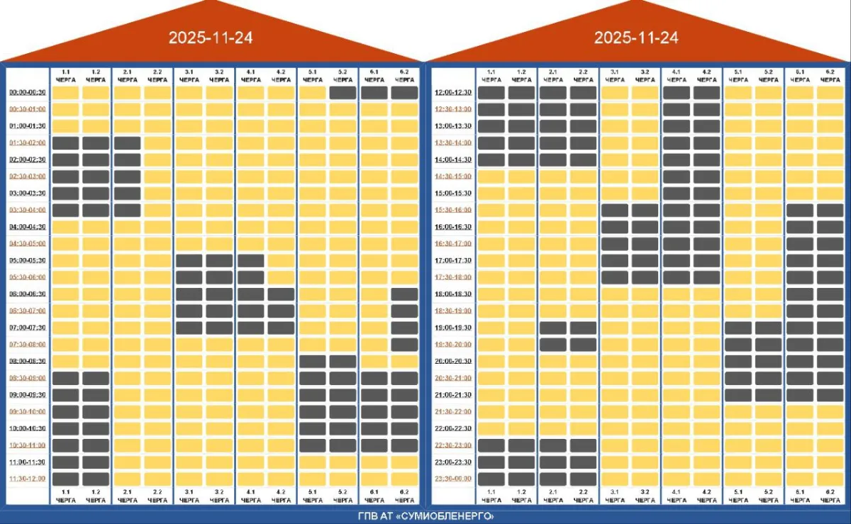 - 06 Графіки відключення світла у Сумській області 24 листопада