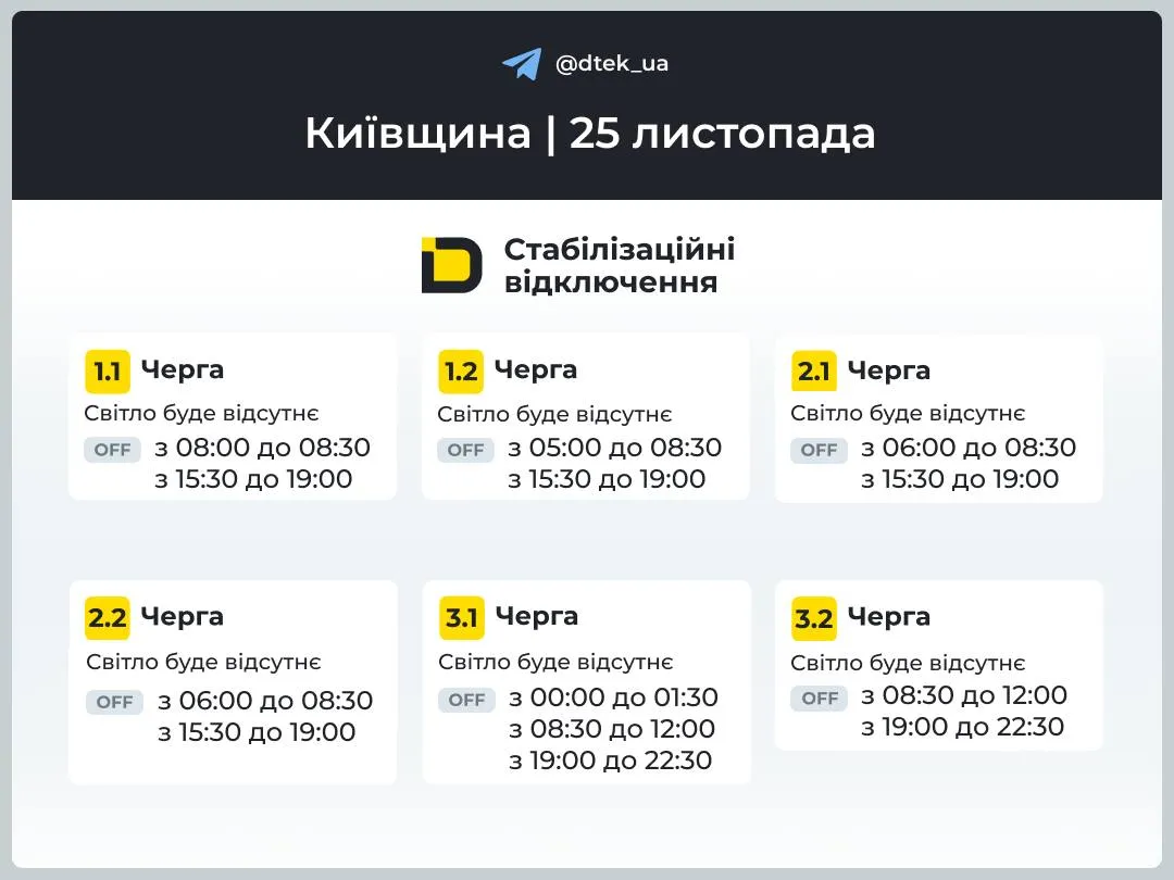 - 03 Графіки відключення світла на Київщині 25 листопада