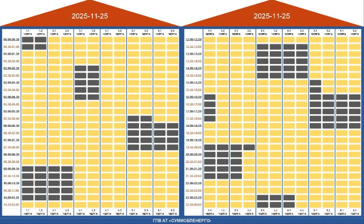 - 06 Графіки відключення світла у Сумській області 25 листопада