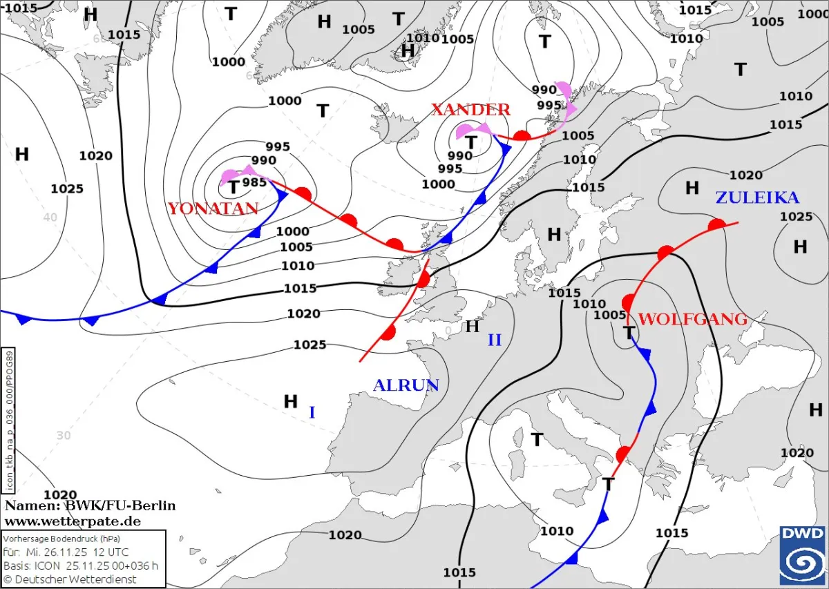 Українська синоптикиня Наталя Діденко у своєму Facebook поділилася прогнозом погоди на середу, 26 листопада. За її словами, країна опиниться у межах теплого сектора циклону Wolfgang, що суттєво вплине на температурний режим та характер атмосферних процесів.