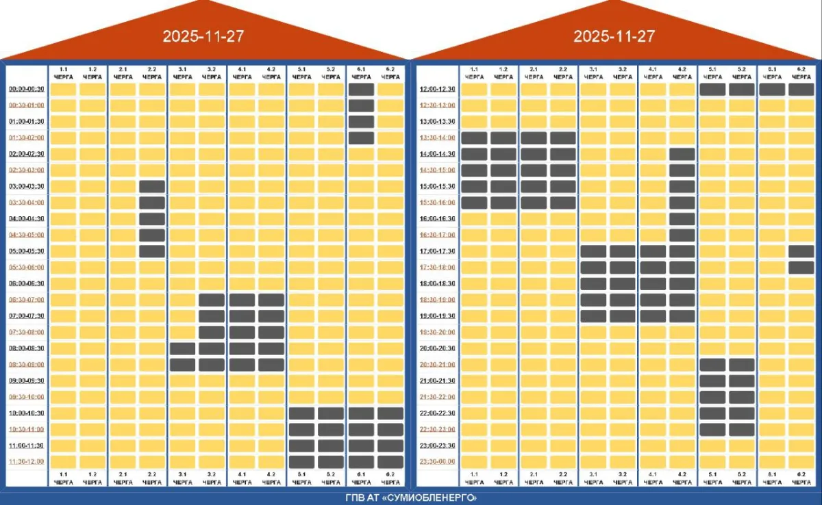 - 06 Графіки відключення світла у Сумській області 27 листопада