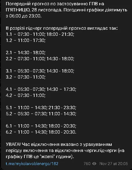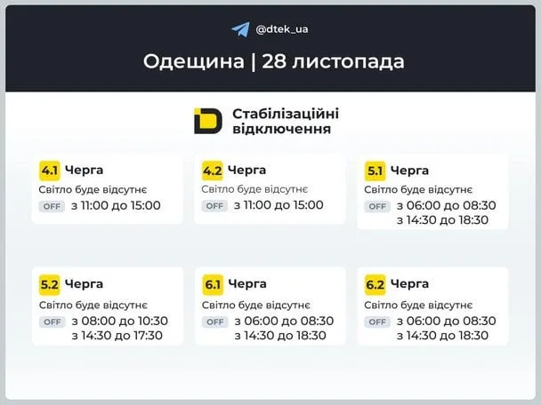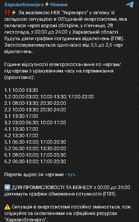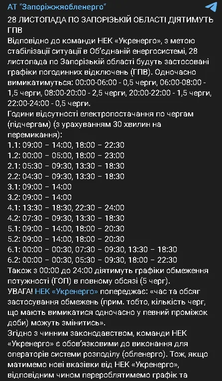 - 01 Як діятимуть графіки відключень світла 28 листопада