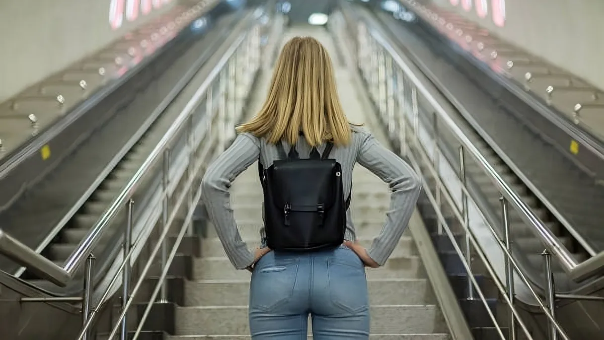 Жінка перед ескалатором. Фото: electricalschool.info