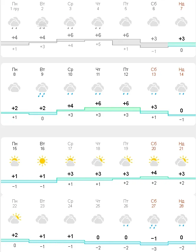 - І що грудень буде м’яким: -3°…+5°, мокрий сніг і тумани! Але синоптики попереджають – сюрпризи ще попереду!