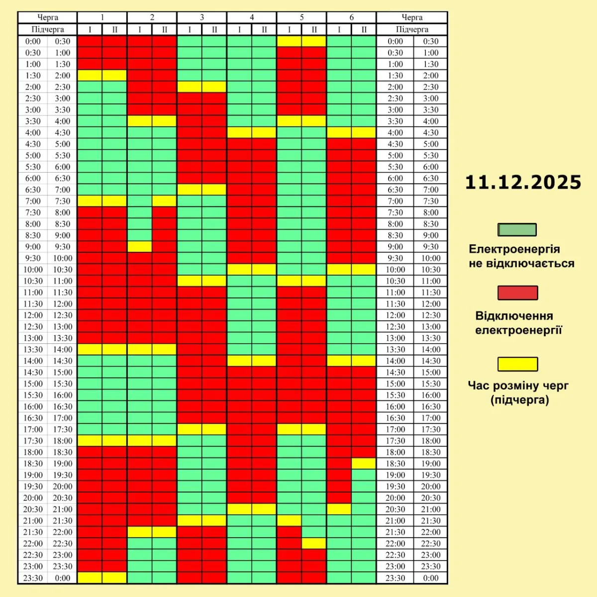 - 06 Графіки відключення світла на Чернігівщині 11 грудня
