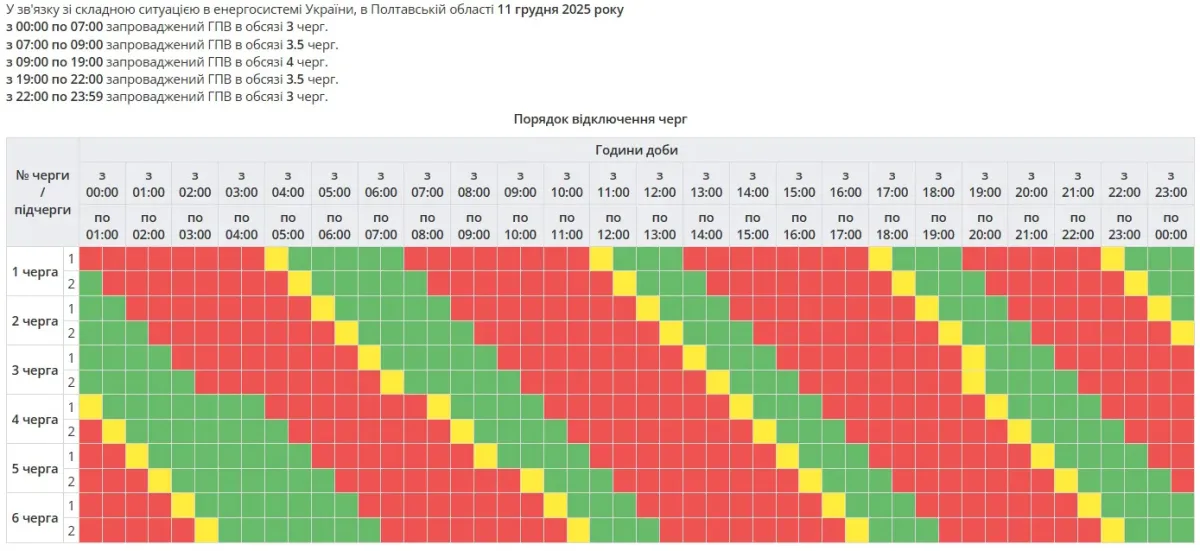 - 10 Графіки відключення світла на Полтавщині 11 грудня