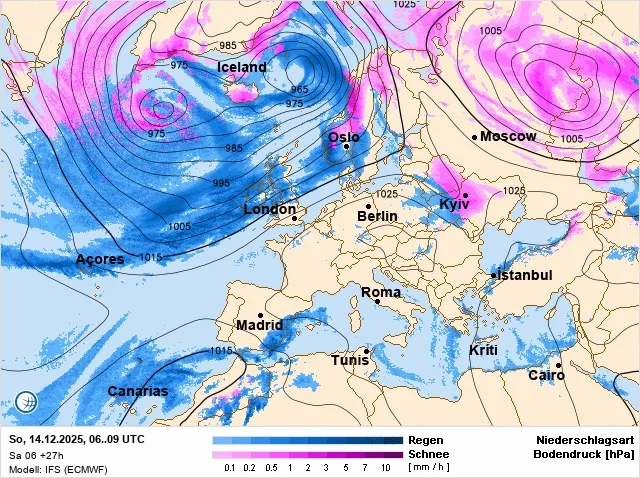 Відома українська синоптикиня Наталя Діденко у Facebook оприлюднила прогноз погоди в Україні на 14 грудня. За її словами, погодну ситуацію визначатиме взаємодія одразу двох масштабних антициклонів, між якими сформується нестійка зона з опадами.