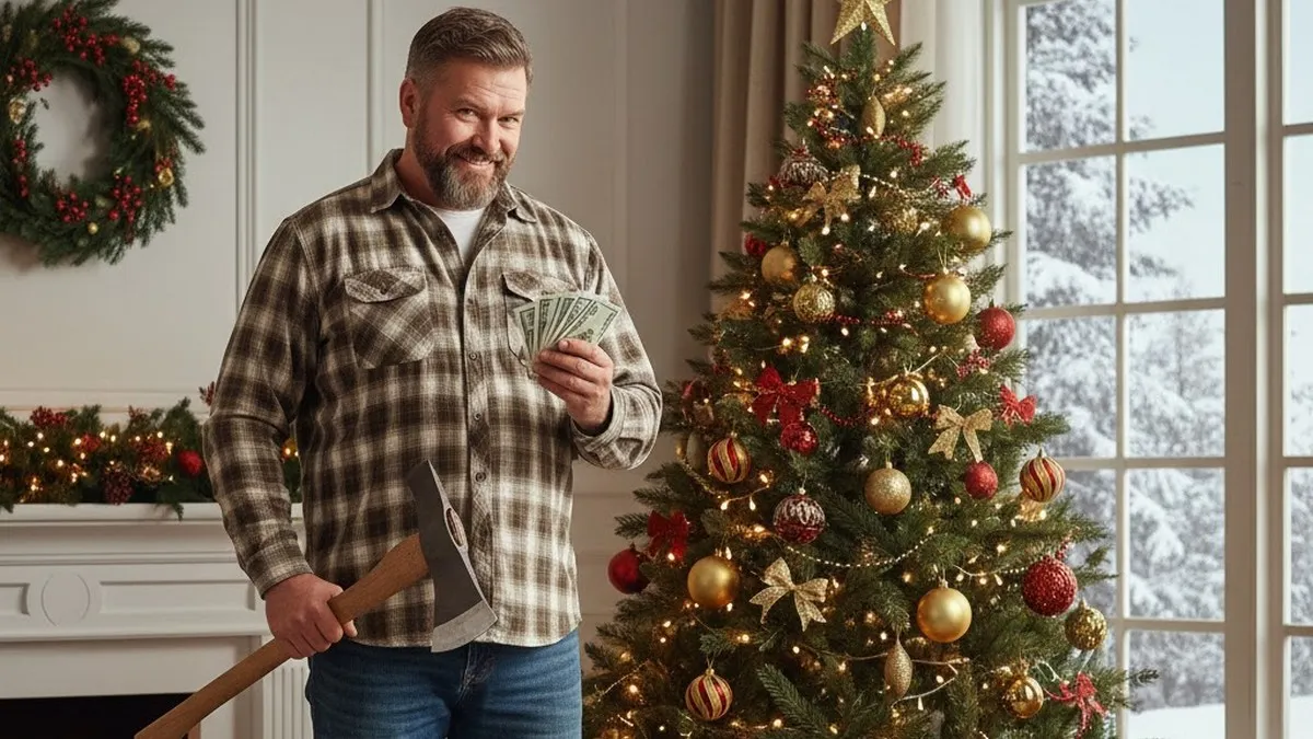 Чоловік з топором біля ялинки. Фото: BLIK.ua, згенеровано засобами ШІ