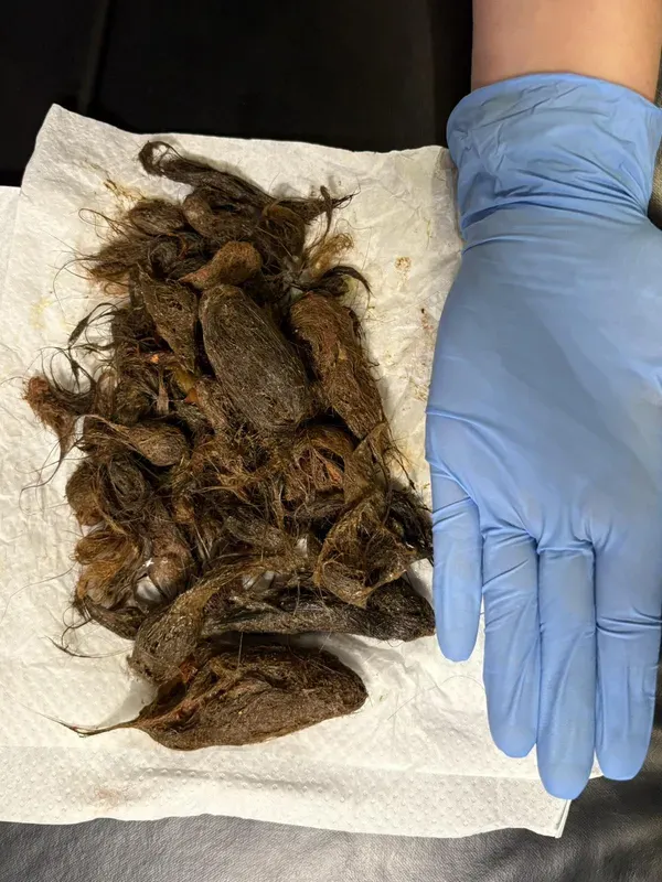 «Вручання тривало орієнтовно 3,5 години. Трихобезоар заповнював третину шлунка і ще не був щільним, тож вдалося розділити його на фрагменти і поетапно видалити. Важив 700 грамів».