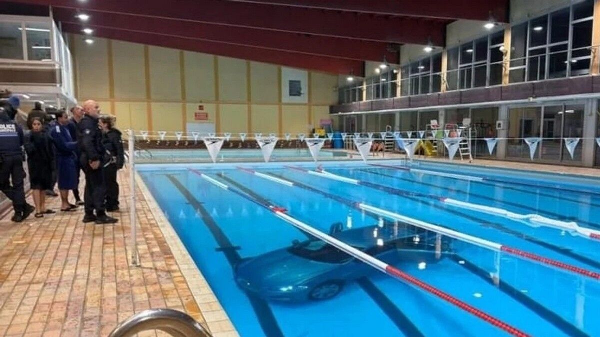 Машина спочатку протаранила огорожу, після чого скляну стіну комплексу, подолавши значну відстань, і зрештою впала просто у 25-метровий басейн. Авто майже повністю занурилося у воду між плавальними доріжками.