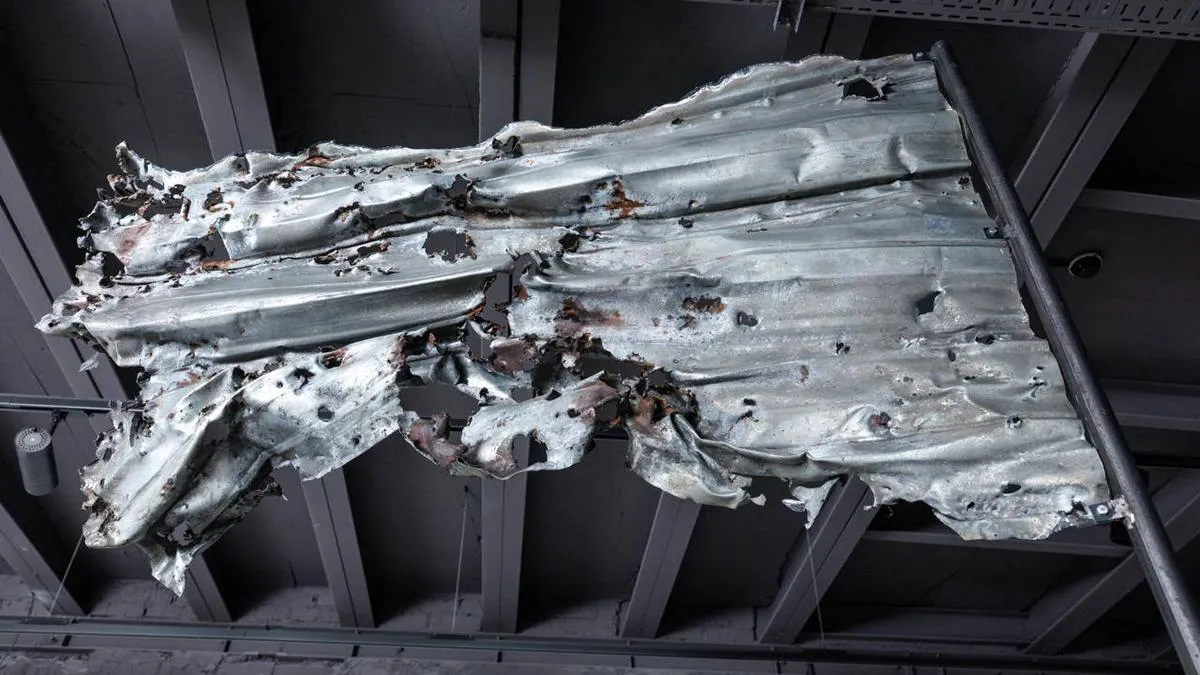 Український художник Нікіта Кадан створив інсталяцію у формі прапора з уламка однієї з теплоелектростанцій ДТЕК, що зазнала російських атак. Про це повідомляє компанія ДТЕК на офіційному телеграм-каналі. Інсталяція поєднує реальний матеріал руйнувань із мистецькою формою, перетворюючи слід атаки на знак опору.