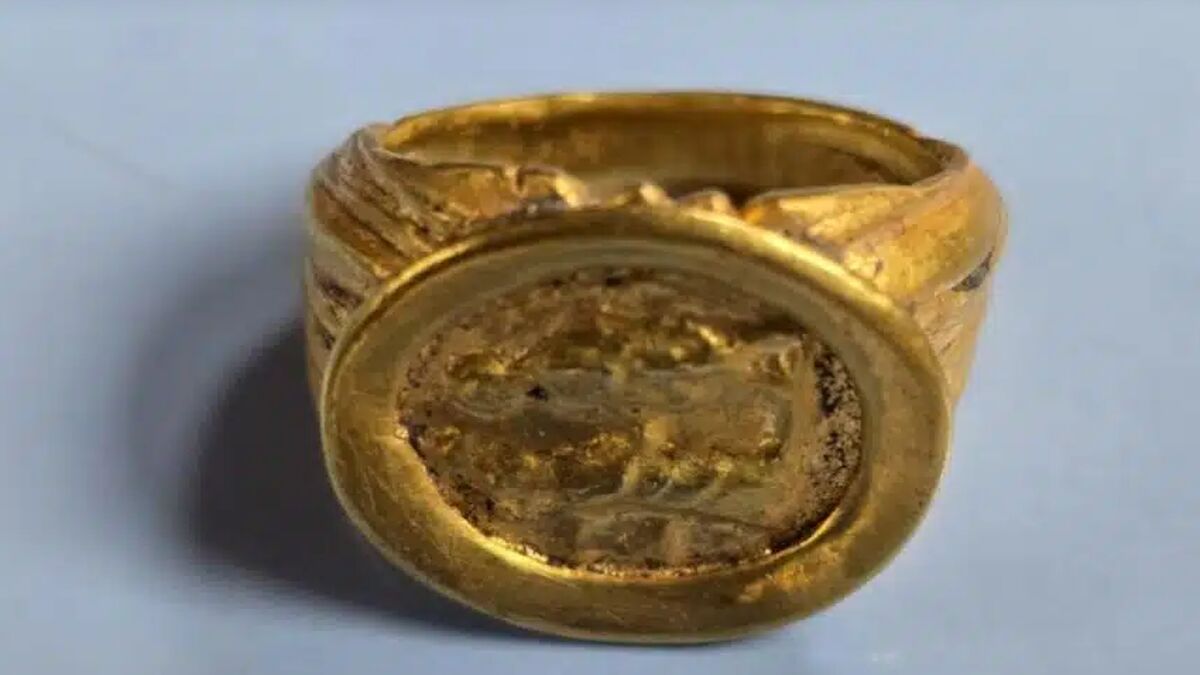 Обручку виявили на глибині близько шести метрів у останні дні розкопкового сезону 2025 року. На золотому овальному безелі викарбувано подружню пару — класичний римський символ єдності та законного шлюбу.