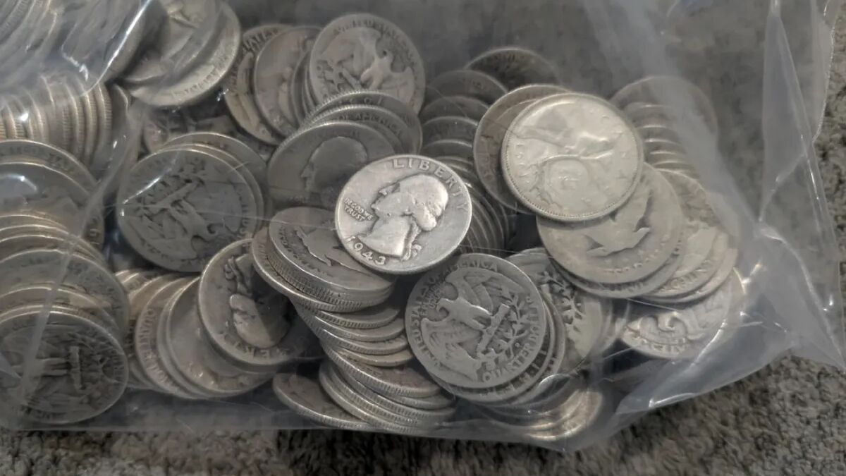 Відкривши загадкову коробку, пара виявила всередині кілька пакетів, наповнених монетами різних номіналів. Більшість знайдених півдоларів, четвертаків та десятицентовиків були виготовлені з 90% срібла.