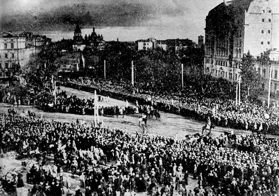 Проголошення Акту Злуки на Софіївській площі 22 січня 1919 року. Фото: Український Інститут національної пам'яті