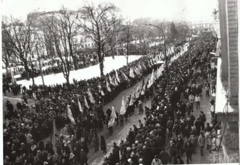 "Живий ланцюг" на проспекті Свободи у Львові. 21 січня 1990 Київ. 21 січня 1990 рік. Фото: uinp.gov.ua