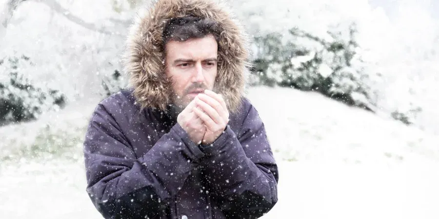 Чоловік гріє руки диханням. Фото: Depositphotos