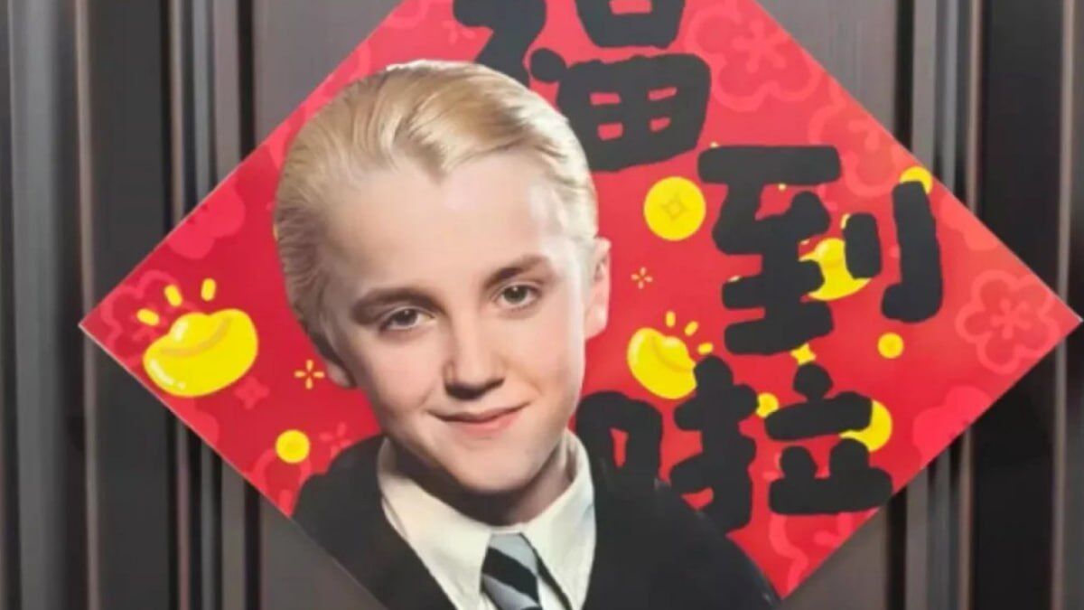 Актор Том Фелтон, який зіграв Драко Малфоя в серіалі про Гаррі Поттера, раптово став частиною святкового декору: у китайських домівках з’являються зображення його персонажа, а онлайн-платформи продають наліпки, магніти та інші новорічні прикраси з його обличчям, повідомляє ВВС.