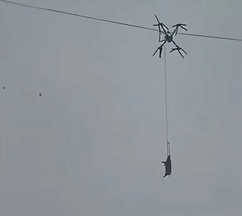 У китайському повіті Тунцзян провінції Сичуань фермер спробував доставити свиней дроном із гірської місцевості на скотобійню, але перший політ закінчився аварією. Трос дрона заплутався у високовольтній лінії, через що свиня застрягла в повітрі, а село залишилося без світла на 10 годин, повідомляє видання South China Morning Post.