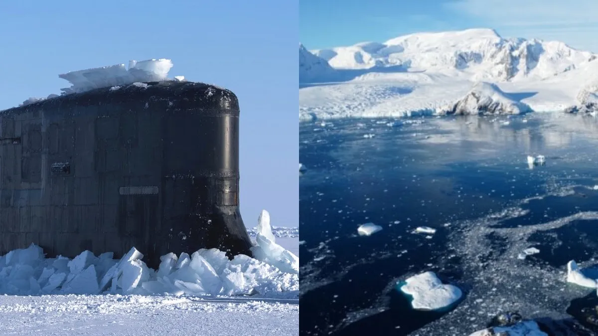 Субмарина підіймається крізь лід, Антарктида. Колаж: Blik.ua