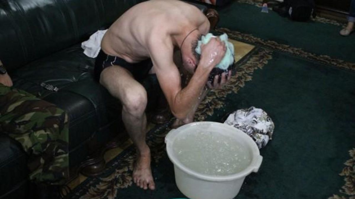 Чоловік миє голову в тазику. Фото: «Волинські новини»