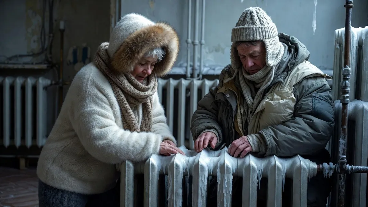 Замерзлі люди біля батареї опалення. Фото: BLIK.ua, згенероване засобами ШІ
