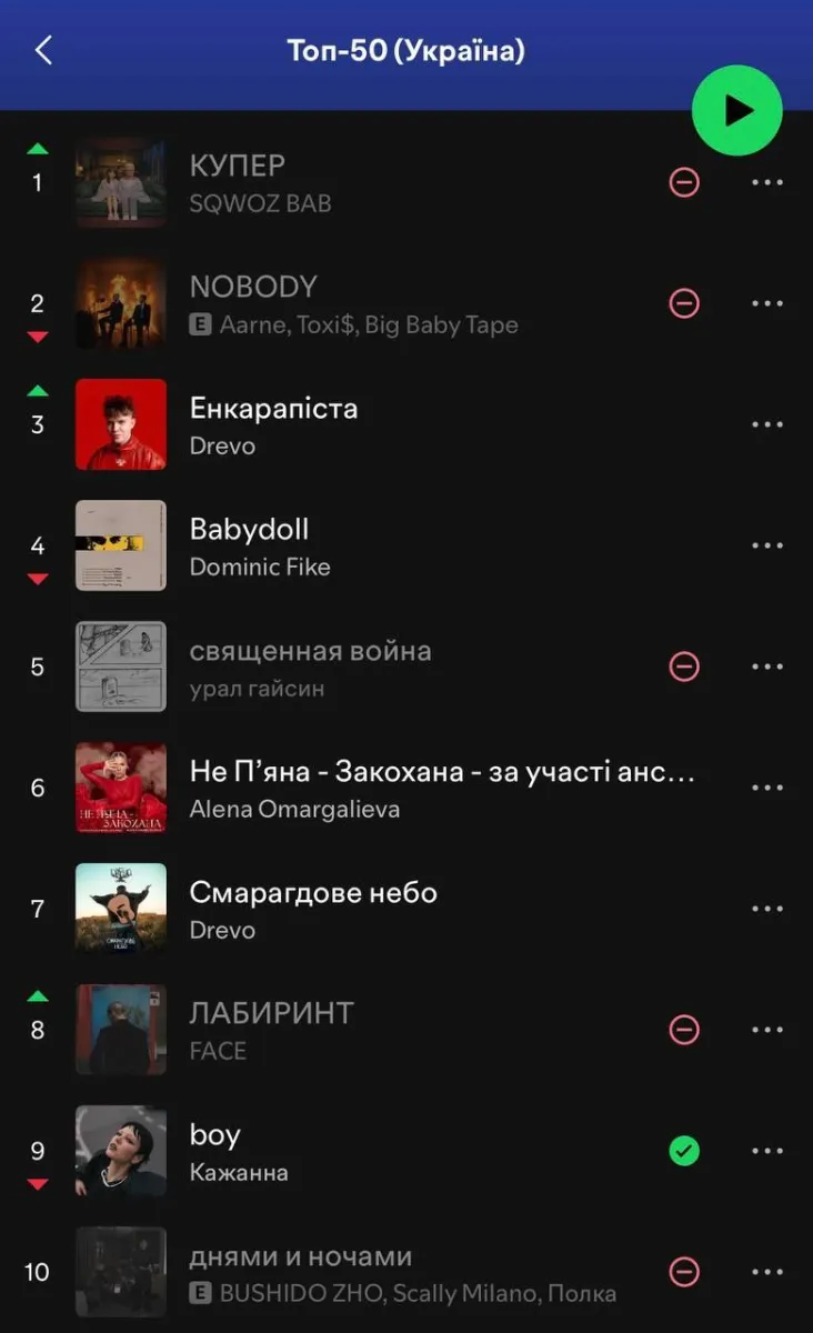 Українські слухачі вивели в топ російські треки на музичних платформах. Серед 10 найпопулярніших треків у вітчизняному чарті Spotify опинилося аж 5 доробків авторів із країни-агресора. Про це повідомляє видання OBOZ.ua.