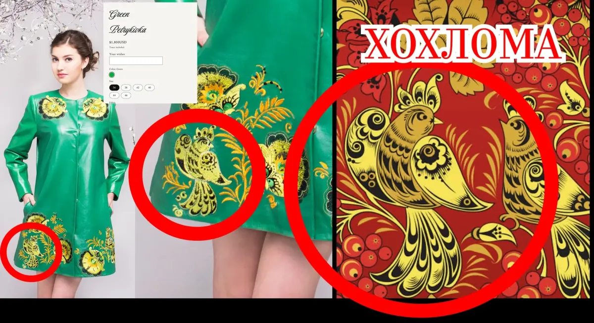Відомо, що Петриківка є декоративно-орнаментальним народним малярством, яке зародилося у однойменному селищі Дніпропетровської області. Лісний вказав на вбрання на сайті бренду, яке справді містить у своєму дизайні хохлому.
