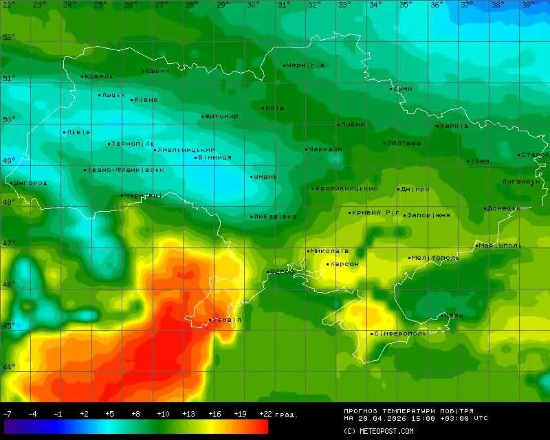 Температура на 20 квітня. Джерело: Наталка Діденко