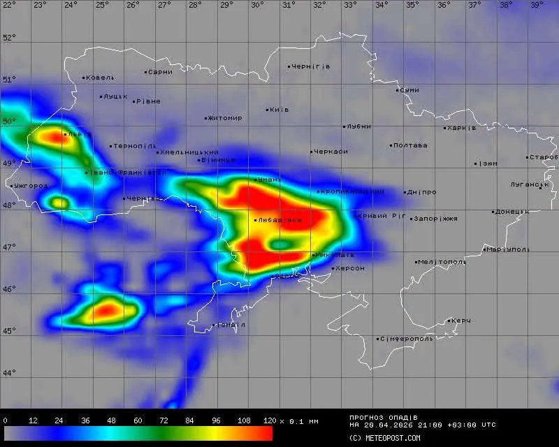 Карта опадів на 20 квітня. Джерело: Наталка Діденко