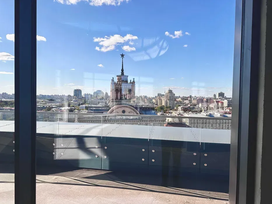 Пентхаус займає весь 14-й і останній поверх будинку. Головна архітектурна родзинка – скляний купол на стелі, що перетворює простір на щось між приватною галереєю та домашньою обсерваторією. З тераси зафіксовано Національний рекорд України за кутом огляду. Цей факт одразу виводить об'єкт за межі звичного ринку нерухомості.