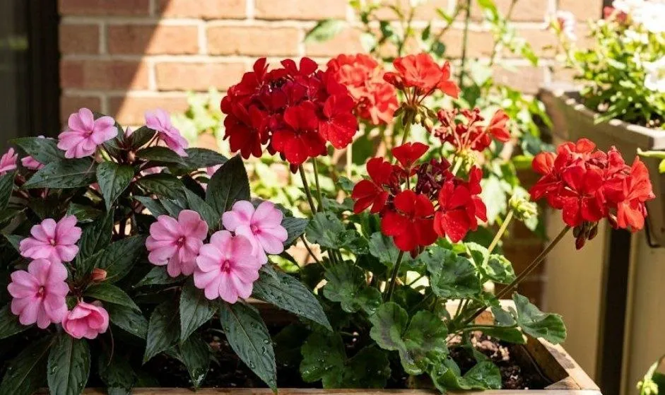 Хоча дрібні квіти бальзаміну могли б гарно підкреслити пишне листя герані, разом їм не вжитися. Проблема в режимі дня: бальзамін є фанатом тіні, він згорає на відкритому сонці. А от герань, навпаки, без яскравих сонячних променів відмовляється цвісти. Якщо ви посадите їх в один горщик або на одну ділянку, вам доведеться обирати, кого з них мучити.