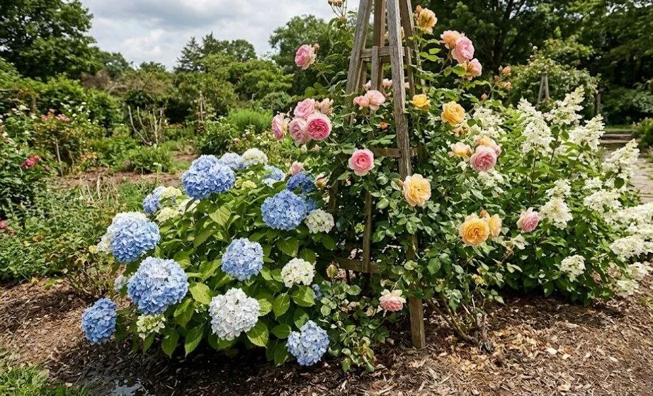 Гортензії та троянди
