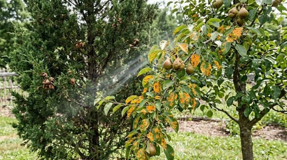 Якщо ви мрієте про соковиті яблука чи груші, тримайте їх подалі від ялівцю. Ці хвойні дерева часто переносять грибок – іржу. Для самого ялівцю він не дуже страшний, але на яблунях він проявляється жахливими помаранчевими плямами. Листя псується, і дерево просто не може дати нормальний урожай.