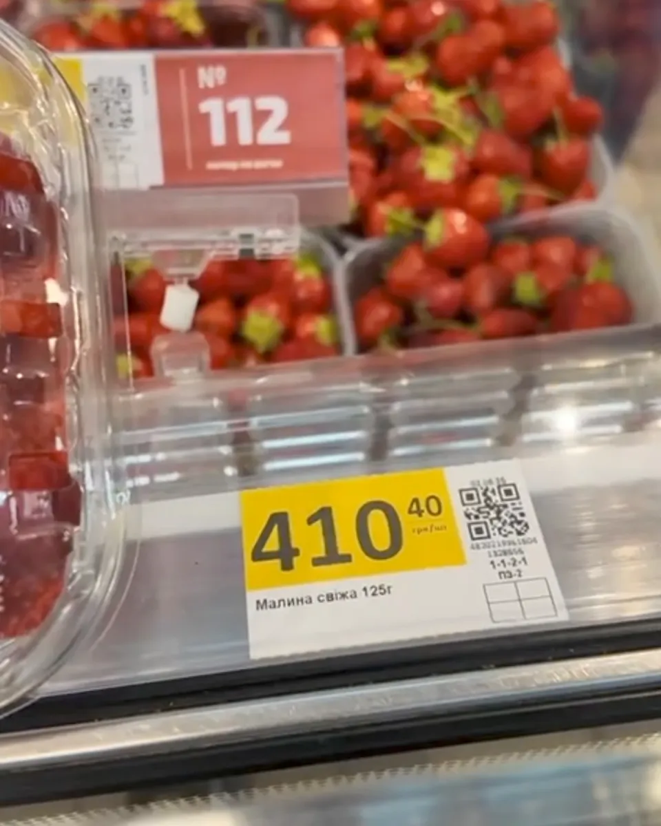 «Друзі, якщо полуницею за 189 гривень уже нікого не здивуєш, то малина, яка їде до нас з Марокко, схоже, з кожним кілометром набирає вагу. Кілограм вартує усього 3200 гривень. Ні в чому собі не відмовляйте», – зазначив автор відео.