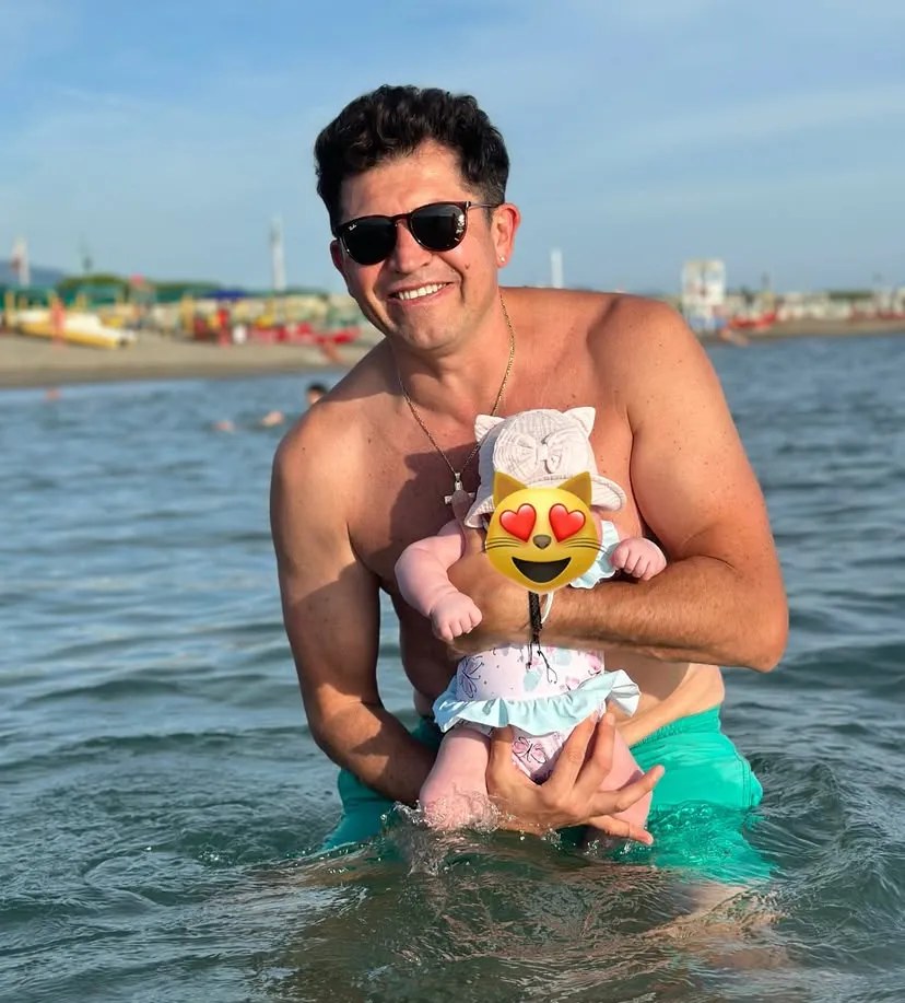 Цього разу він виклав світлину зі своєю донечкою Емілією. Зважаючи на геолокацію, ніжаться задоволені тато та малеча у водах Тірренського моря.